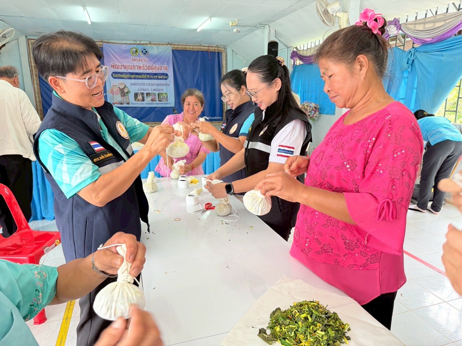 คณะครูเป็นวิทยากรให้ความรู้การทำลูกประคบสมุนไพรให้แก่ผู้สูงอายุได้นำความรู้ที่ได้ไปใช้ทำลูกประคบสมุนไพรเ