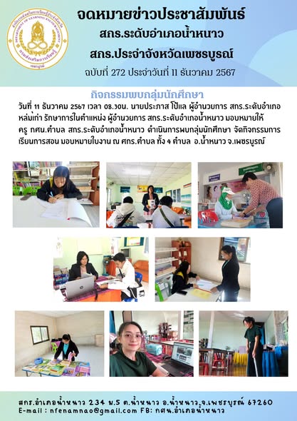 ครู กศน.ตำบล สกร.ระดับอำเภอน้ำหนาว ดำเนินการพบกลุ่มนักศึกษา จัดกิจกรรมการเรียนการสอน มอบหมายใบงาน ณ ศกร.ตำบล ทั้ง 4 ตำบล อ.น้ำหนาว จ.เพชรบูรณ์
