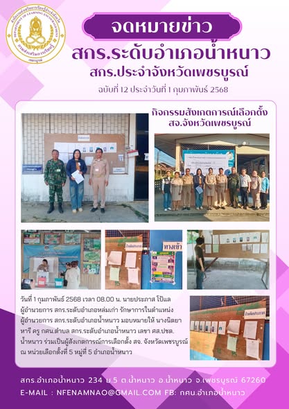 น้ำหนาว ร่วมเป็นผู้สังเกตการณ์การเลือกตั้ง สจ. จังหวัดเพชรบูรณ์ ณ หน่วยเลือกตั้งที่ 5 หมู่ที่ 5 อำเภอน้ำหนาว