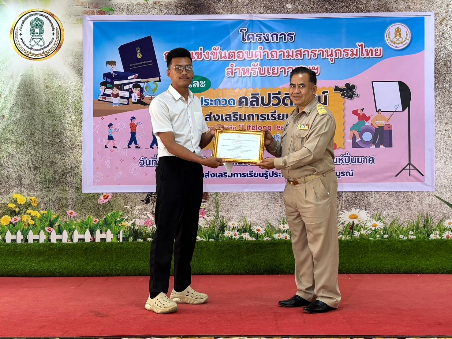 นายธงชัย สนั่นเมือง นักศึกษา สกร.ระดับอำเภอน้ำหนาว ได้รับรางวัลชนะเลิศอันดับที่ 1 ในระดับประถม โครงการแข่งขันตอบคำถามสารานุกรมไทยสำหรับเยาวชน ฯ และการประกวดคลิปวีดิทัศน์ ส่งเสริมการอ่าน และการเรียนรู้ ภายใต้หัวข้อ "Lifelong Learning เพราะเราเกิดมา เพื่อเรียนรู้ตลดชีวิต" ประจำปี 2568