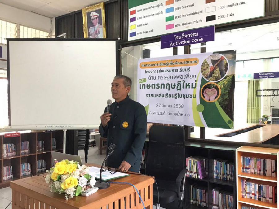 วันที่ 27 มีนาคม 2568 เวลา 09.30 น. นายประภาส โป้แล ผู้อำนวยการ สกร.ระดับอำเภอหล่มเก่า รักษาการในตำแหน่ง ผู้อำนวยการ สกร.ระดับอำเภอน้ำหนาว มอบหมายให้ คณะครูและบุคลากร สกร.ระดับอำเภอน้ำหนาว ดำเนินการจัดโครงการการศึกษาเพื่อพัฒนาตนเอง โครงการส่งเสริมการเรียนรู้ด้านเศรษฐกิจพอเพียงและเกษตรทฤษฎีใหม่ จากแหล่งเรียนรู้ในชุมชน โดยมีนายอดุลย์ แสนราชา ประธานกรรมการสถานศึกษา ให้เกียรติเป็นประธานเปิดโครงการ ณ สกร.ระดับอำเภอน้ำหนาว S:0